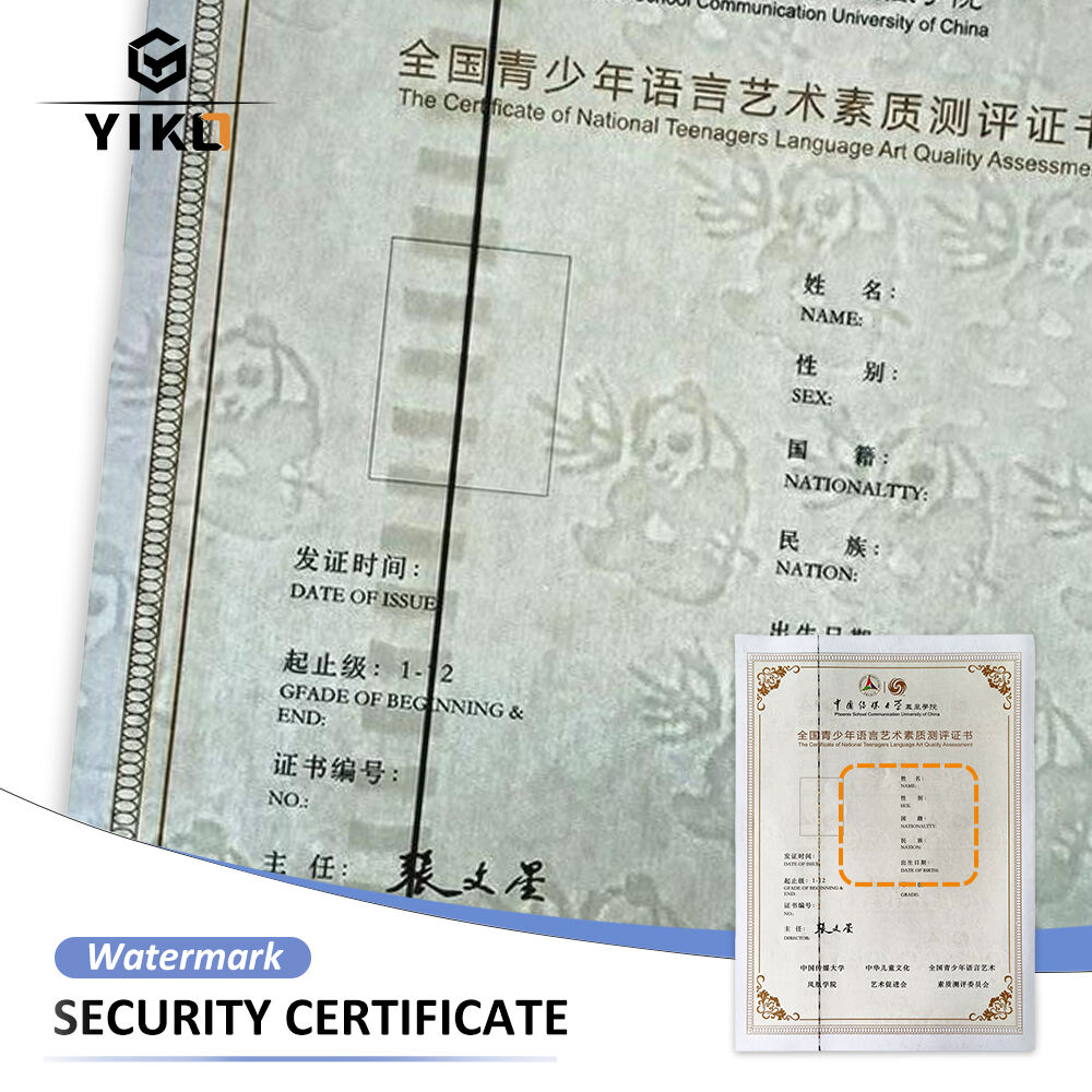 -Security Paper: 60-160 gsm, watermark, visible and invisible fibers