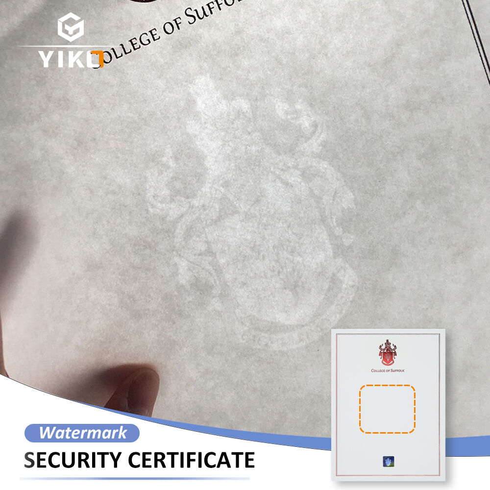 Vannmerke er en innebygd sikkerhetsfunksjon som dannes direkte i papirets fiber under papirproduseringsprosessen. Det gir et svært pålitelig autentiseringslag for sertifikater, identifikasjonsdokumenter og premium sikkerhetspapirer på grunn av sine ikke-utskrivbare og ikke-fjernbare egenskaper.